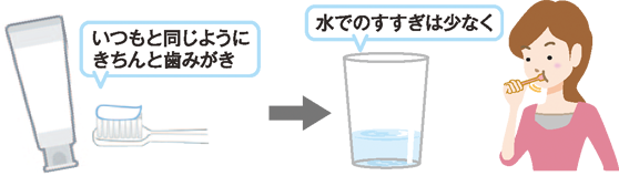 水でのすすぎは少なめに、お口の中が気持ち悪くない程度に留めましょう。